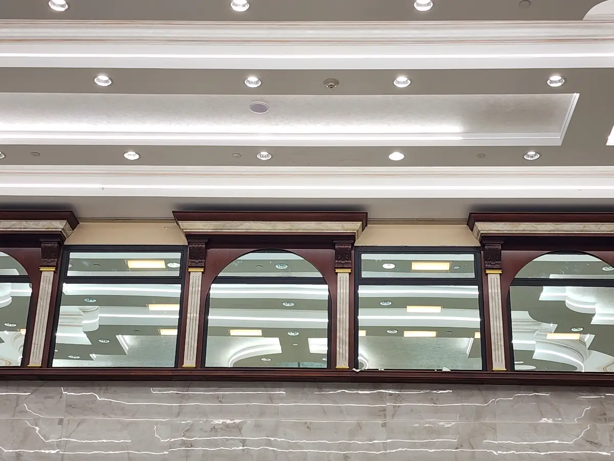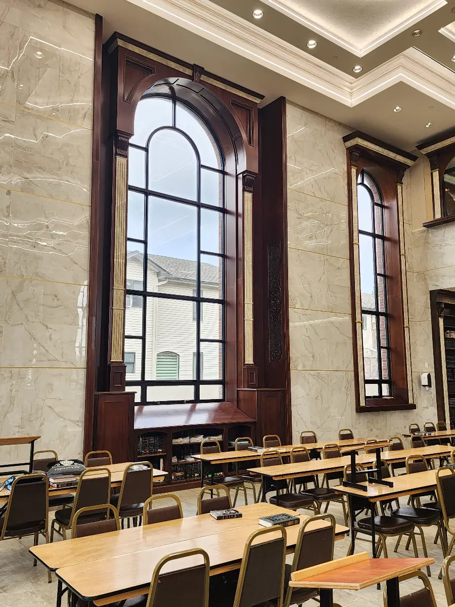 החלונות והמחיצה עוצבו בהשראת קווי הארון, ויחד הם יוצרים תחושת הרמוניה שלמה בחלל בית הכנסת.